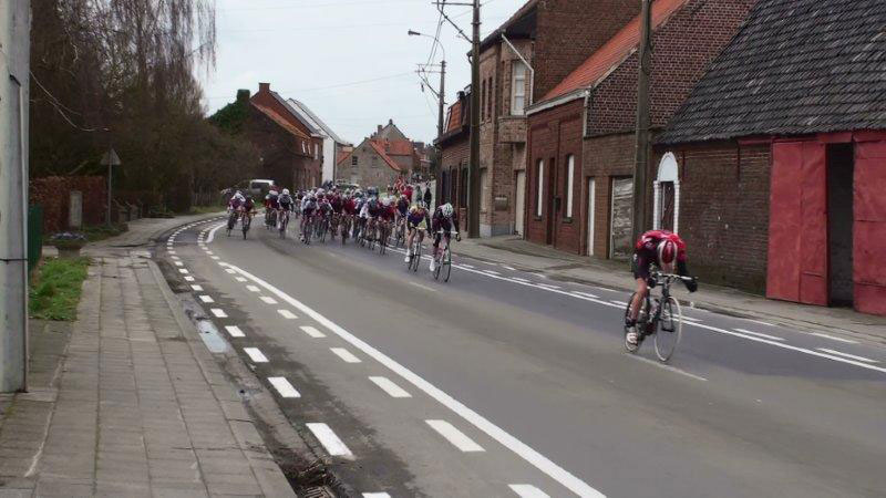 Nog nooit was het zo nerveus in het begin. We moesten om te beginnen eventjes achter de auto rijden en daarin in vielen al heel wat renners. Als we "losgelaten" werden vielen er ook. Ik was nochtans zeer voorzichtig, maar ik viel toch. Het was gelukkig niet zo zwaar en ik kon door rijden, al moest ik nog mijn polar bevestigen. Ik had zo'n 30 seconden verloren juist voor de achterkant van de Muur. Een 500 meter later zat ik al dicht bij het peloton, maar dan vielen er nog waardoor de auto's stopten en ik ook. Ondertussen waren al 4 renners weg gereden. Op de Bosberg ging ik goed vooruit en ik kon gelijke tred houden met het peloton. Daarna schoven de auto's op en ik kon niet aanpikken omdat ze te snel reden. Ik dacht dat ik er niet meer bij ging geraken. Met een groepje probeerde ik de kloof te dichten. Ik moest voortdurend op kop rijden en de krachten waren bijna op. Op dat moment was er even wapenstilstand in het peloton waardoor we wel succes hadden na 10 km achtervolgingswerk. Die wapenstilstand was stilte voor de storm: De klim naar Onkerzele lag nu op ons pad. Ik was totaal nog niet gerecupereerd, maar schoof toch op om niet gelost te worden. De grote ronde zat er dan op.