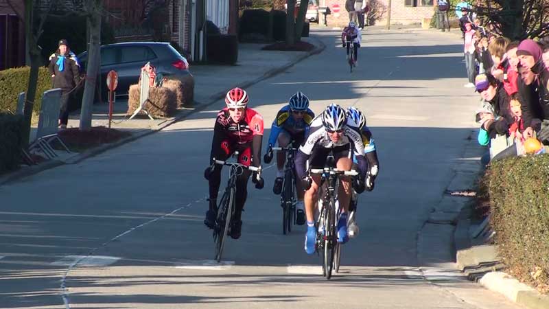Ruben Vanderhaeghen won in een millimetersprint voor Jens de Winne en Gregory Vandaele. De conditie is aan het stijgen, ik moet nu gewoon zorgen dat ik enkele malen niet tegen de tarmac ga.