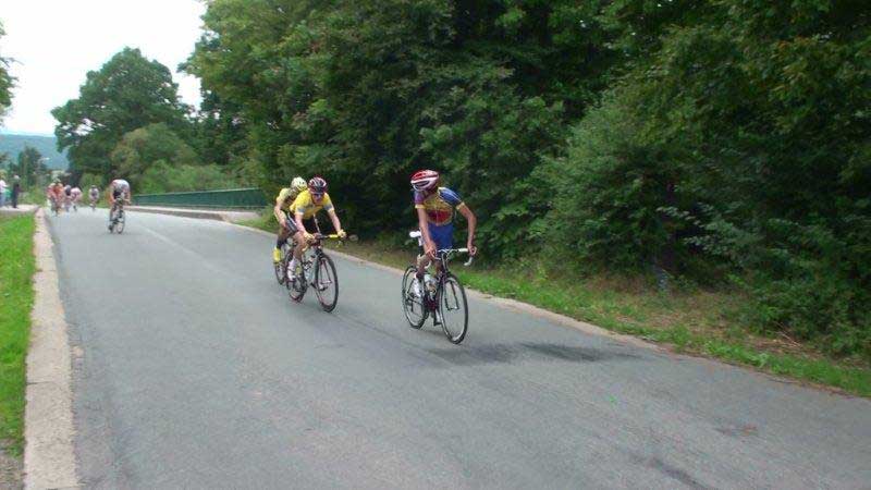 Voor de 4de klim had er zich een groep van het peloton afgescheurd, toen we bij de bordjesman zagen dat ze dichter kwamen, draaiden we nog eens het gaspedaal volledig open. Ze bleven hangen en met 15 seconden voorsprong begonnen we aan de laatste klim in het plaatselijk circuit. Joachim Vanreyten nam de kop, Een moegestreden Michael en ook Piotr moesten al redelijk snel de rol lossen. Ik bleef in zijn wiel, maar de tank was leeg, ook omdat ik geen snelle suikers nam op het laatste. Joachim die nog frisser zat, trok nog één keer door en was weg. Ik volgde op 10 seconden, Michael viel terug en een achtervolgende Piotr kreeg het gezelschap van Aimé de Gendt.